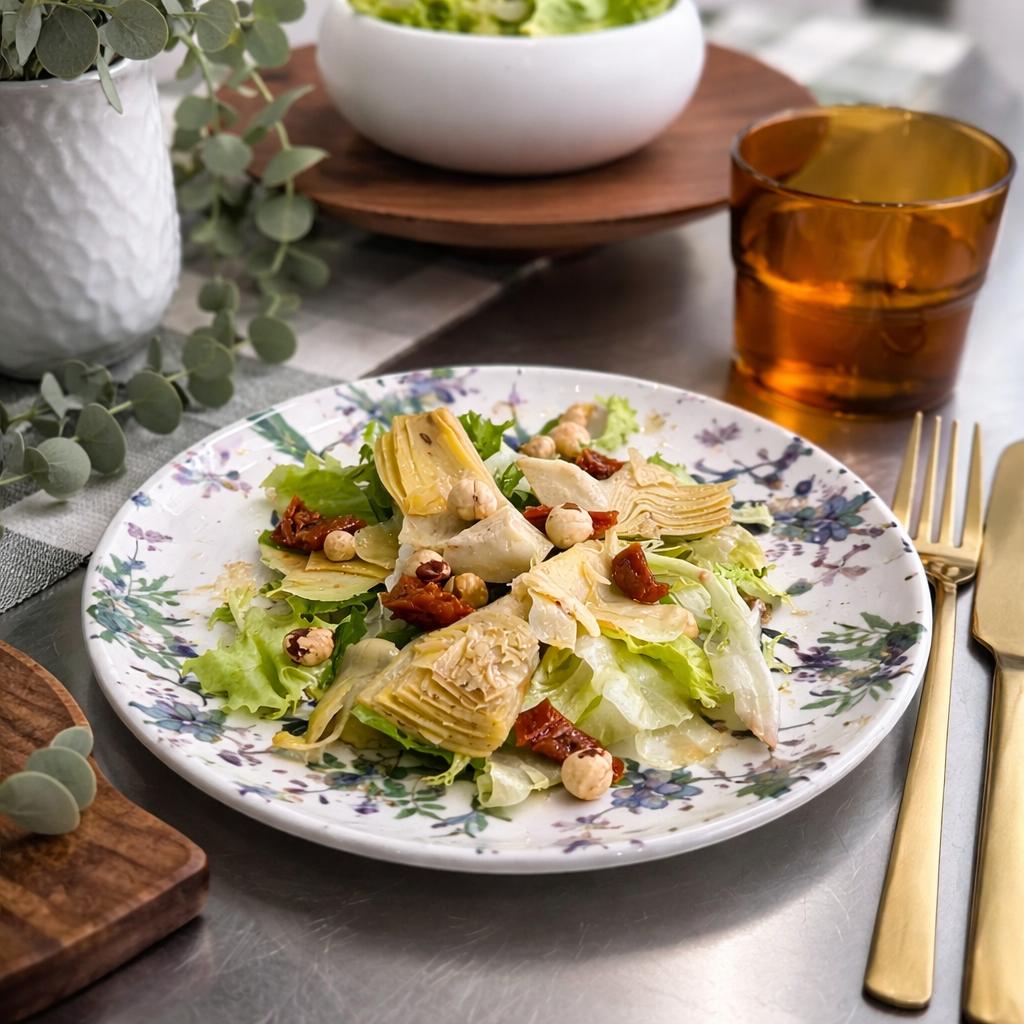 Artichauts fondants tomate & éclats de noisette.
